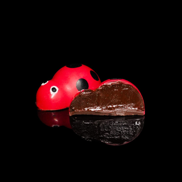 Ladybugs. Dark chocolate shell. A delicate chocolate paste with a deep, velvety taste.
