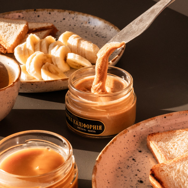 Sunny California. The luxurious scent of vanilla and fragrant almonds give a special character to the silky caramel. You want it all the time! Eat it with a spoon, spread it on bread, savor it as a topping for ice cream or fruit, it will make any afternoon snack festive.