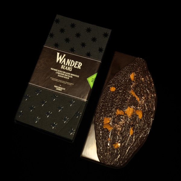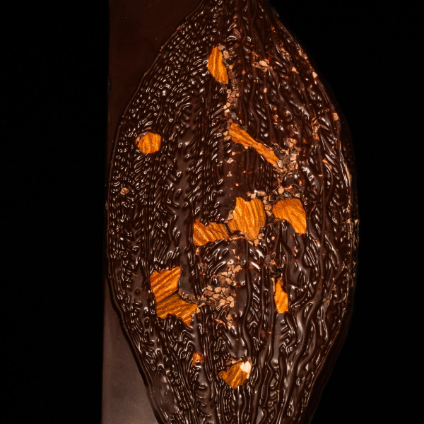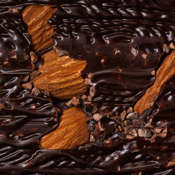 Selection Dark is velvety dark chocolate with a charming harmonious taste. No bitterness and 0% sugar content, selected almonds and crunchy cocoa nibs.