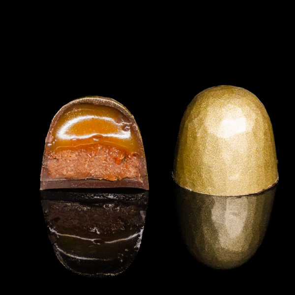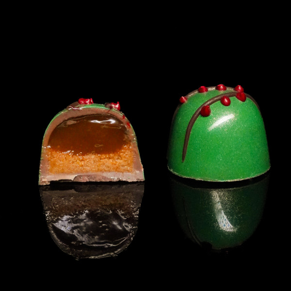 Pralina orzechowa z kandyzowaną pomarańczą – ciepłe światło w zimowej ciszy. To on jest lodowym sercem tej kolekcji.