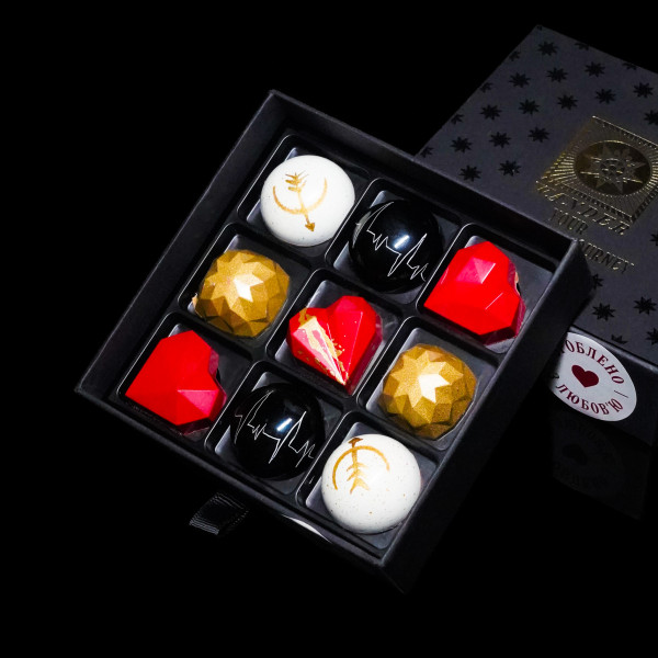 Kontrast i głębia. Kwaśność dojrzałej maliny spotyka się z delikatnym, maślanym praliné pistacjowym, otulonym mleczną czekoladą.