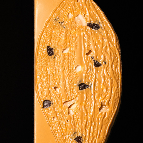 Карамельний шоколад — це забаганка тих, хто вже скуштував усі відтінки шоколаду. Його вершковий, запаморочливий аромат та післясмак найніжнішої карамелі ми поєднали з контрастом рідкісної солі з Атлантики та пружних кислуватих вишень.