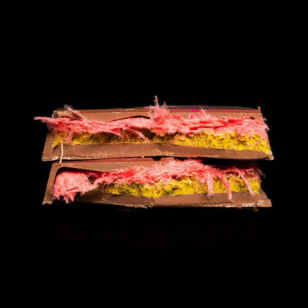 Гранатове пішманьє, огорнене оксамитовим поєднанням сицилійської фісташки та підсмаженого тіста катаїфі, створює яскравий баланс солодкої свіжості та глибокого шоколадно-горіхового післясмаку.
