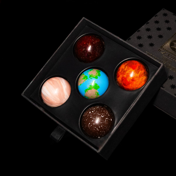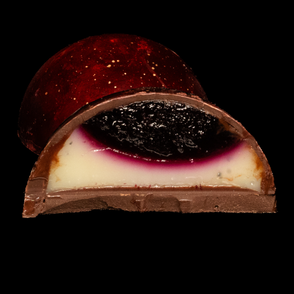 З Місяця видно нашу планету як маленьку кульку зі сліпучо-білого цукру. А наш Чорний Місяць смакує як ніжний італійський сир горгондзола у вишуканому ганаші з білого бельгійського шоколаду на подушечці ароматного конфі зі смородини та чорниці.