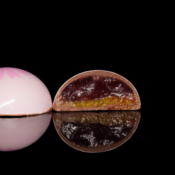 Хрустка фісташка зустрічається з яскравою малиновою карамеллю, створюючи найвесняніші враження!