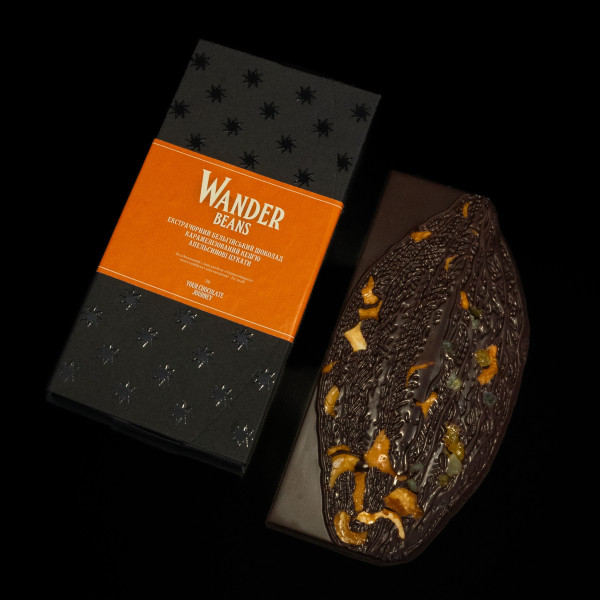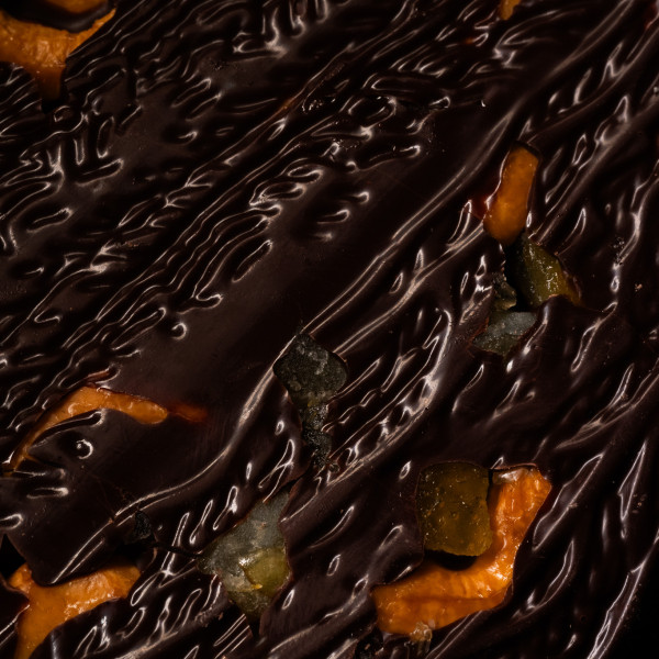 Брутальний екстрачорний шоколад з нестримним, дуже вираженим смаком. Соковиті кубики духмяних апельсинових цукатів та хрумкий смажений кешью підкреслюють потужний магічний смак шоколаду Supreme 71,5 %.