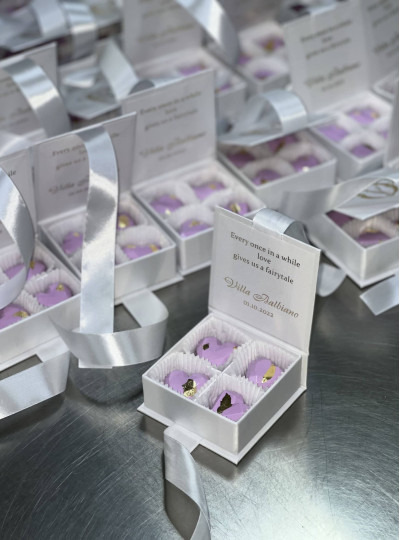 Мы считаем, что даже наши миниатюрные бонбоньерки — это идеальное шоколадное "спасибо" или "поздравляю". Объем заказа влияет на цену, но мы готовы создавать удивительные шоколадные впечатления и для крупных корпораций, и для маленьких компаний.
