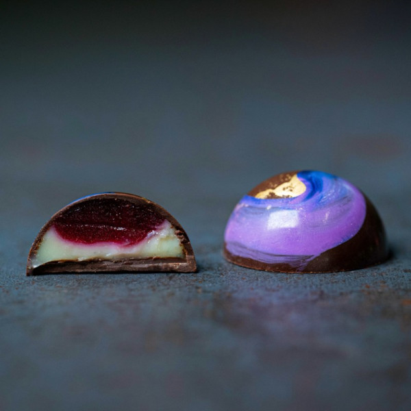 Голубой итальянский сыр с нежной текстурой и пикантным вкусом в изысканном ганаше на белом бельгийском шоколаде. К этому дуэту невероятно подходит ароматное конфи из смородины и черники.