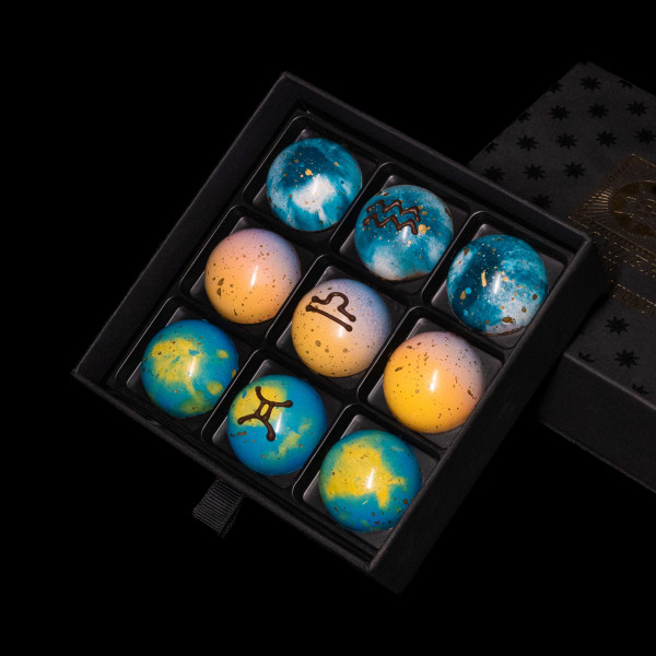Ганаш с кофе и ликёром Baileys — глубокий аромат, мягкое послевкусие и лёгкий импульс энергии. Сливочная нежность сочетается с выразительной кофейной горчинкой. Как и Близнецы, вкус раскрывается постепенно, оставляя яркий живой след.