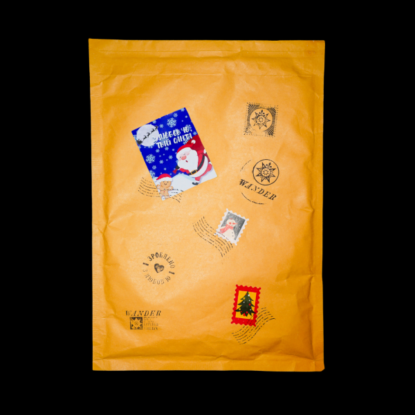 Желтый почтовый конверт с яркими новогодними марками радует, как неожиданный привет из дальних стран, где живет Санта! Вы можете выбрать любые сладости и украсить их волшебным конвертом.